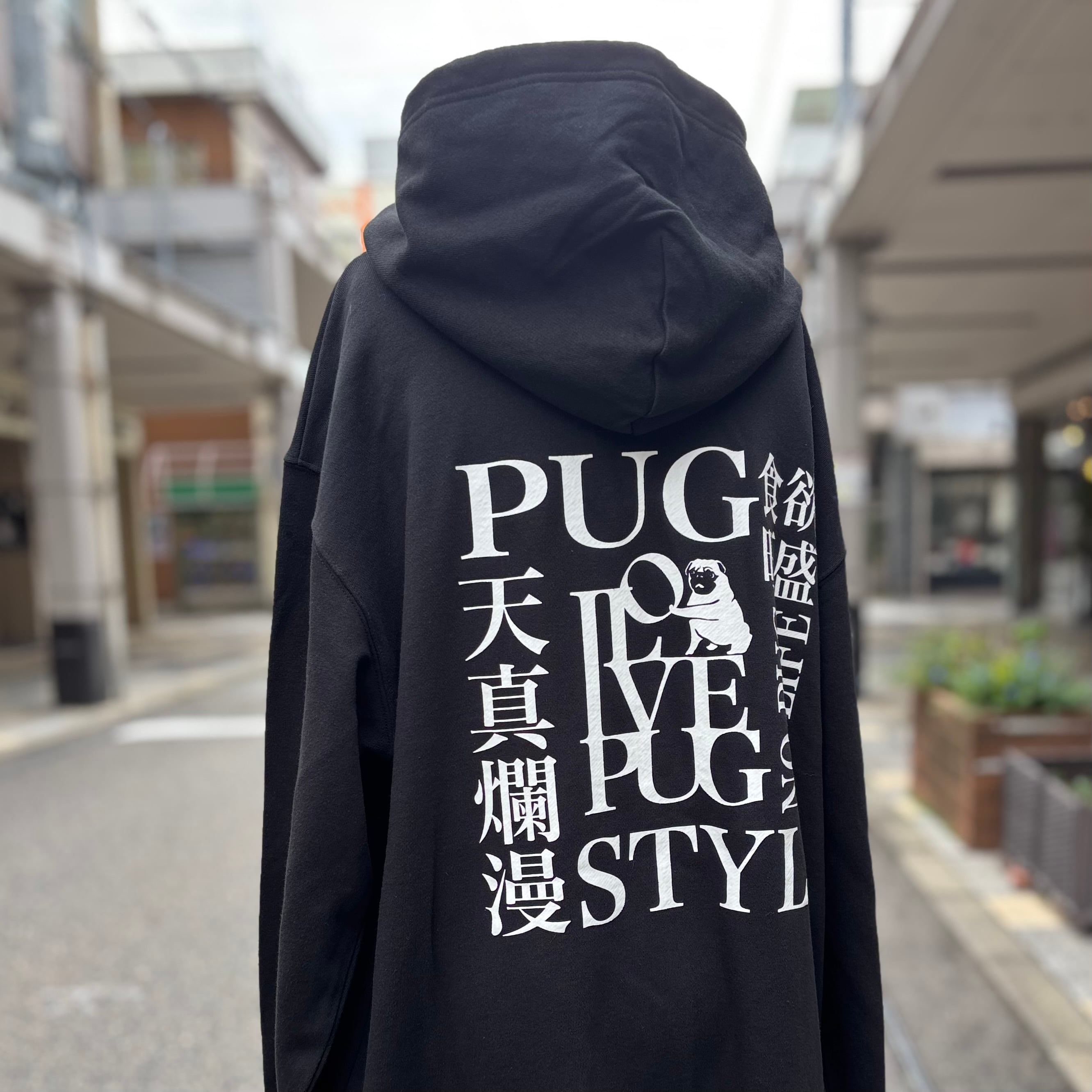 ちなみにパグスタイル店主は身長178cm体重68kgでゆったりとXLを着ています。