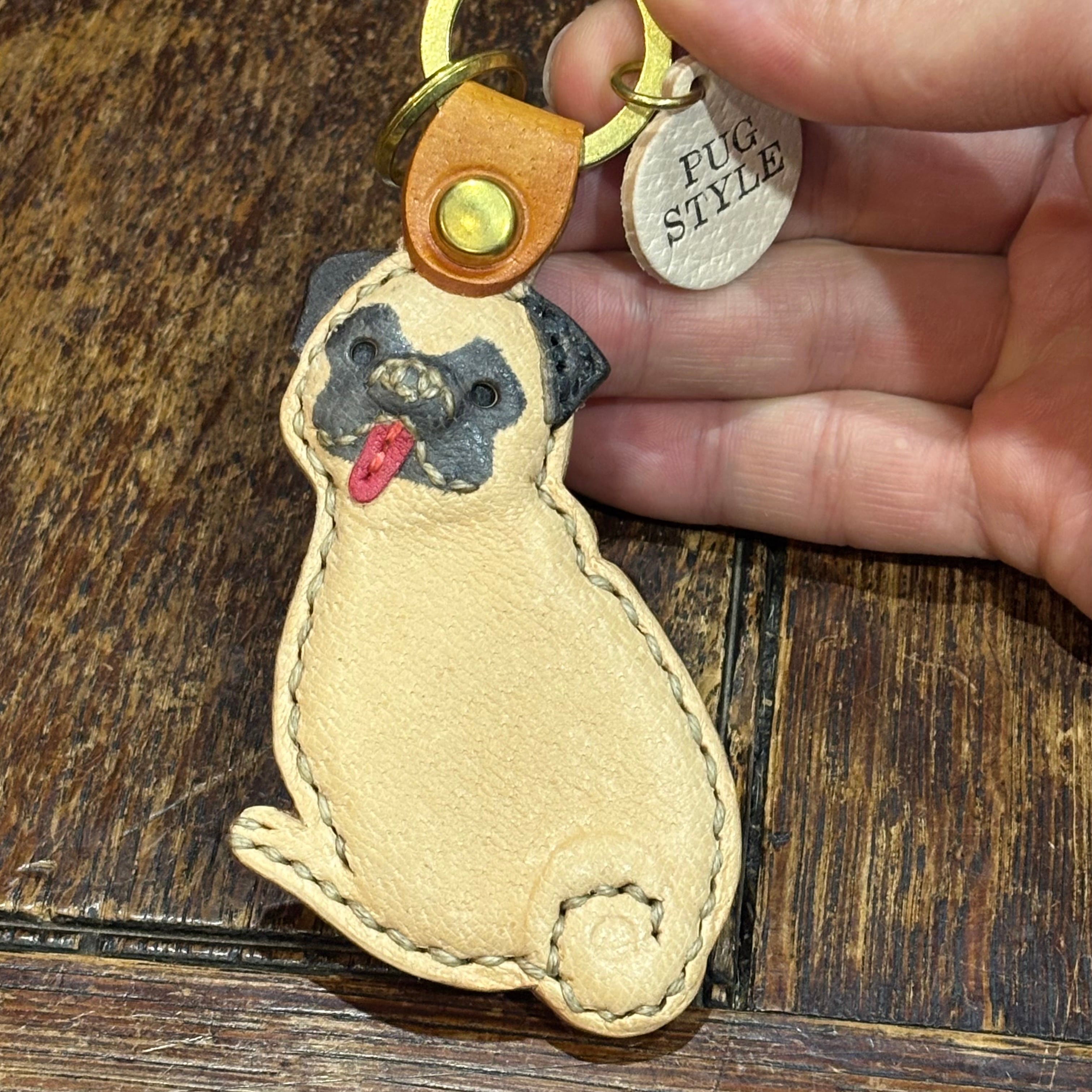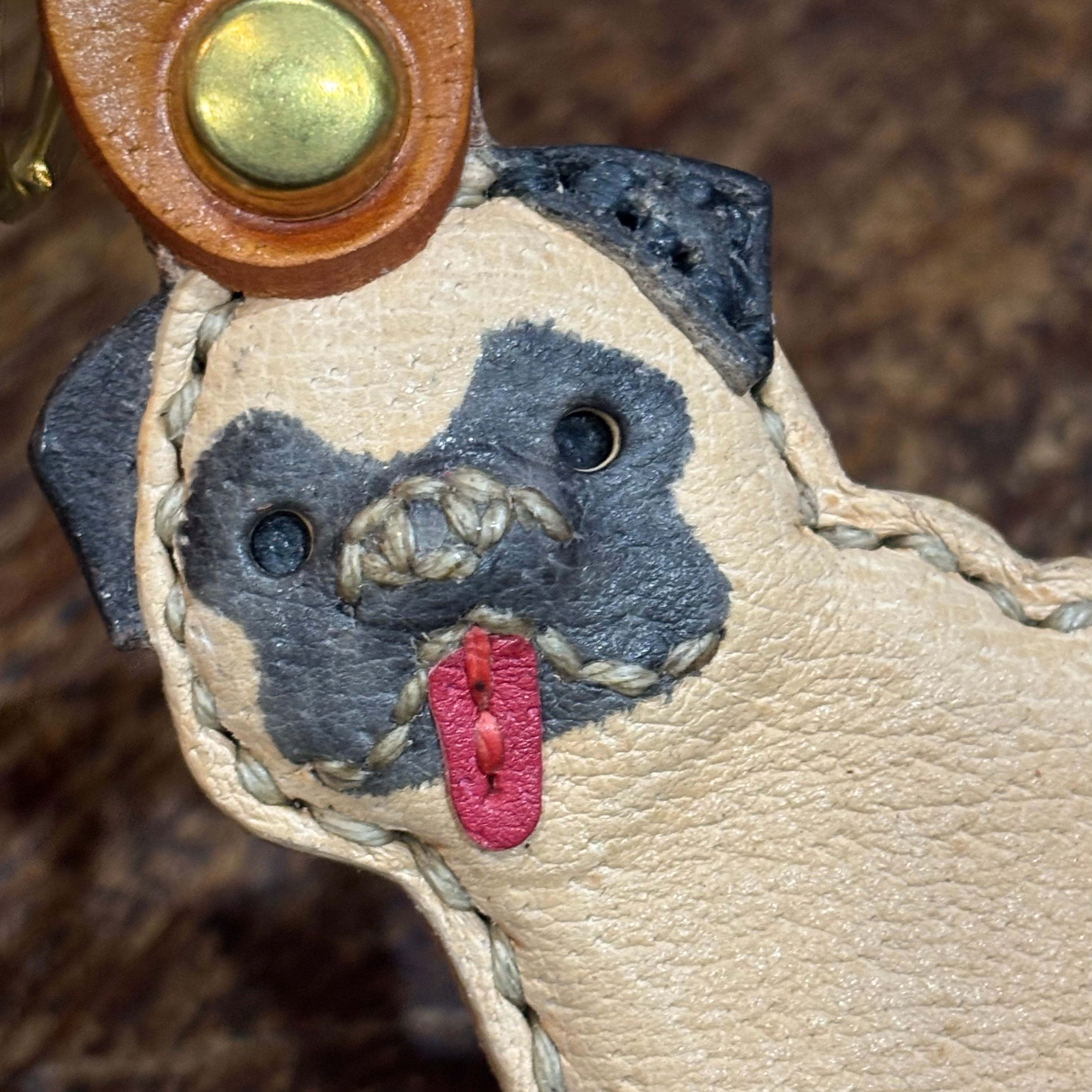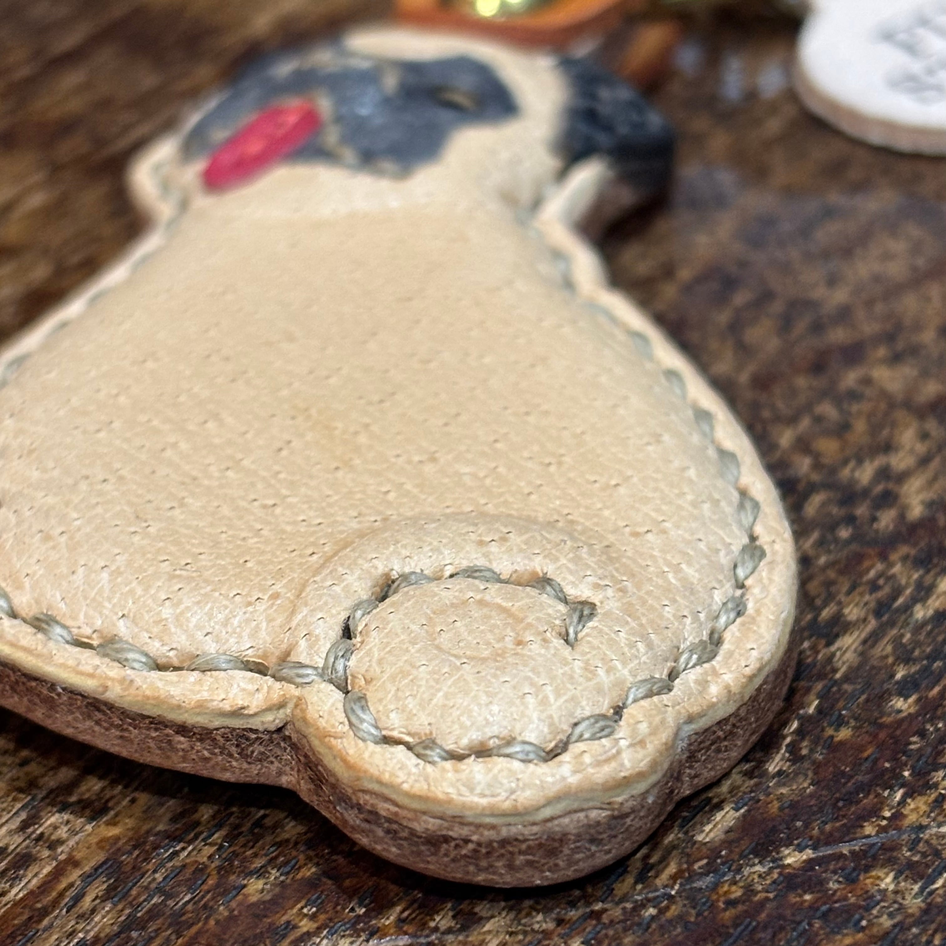 沖縄県石垣島在住のレザーアーティストにKANAMEさんに作ってもらっているパグスタイルオリジナル完全手作り作品、国産革を使用したレザーキーホルダーです。しっかりした作りで使うほどに馴染んでいい雰囲気になっていきますよ。