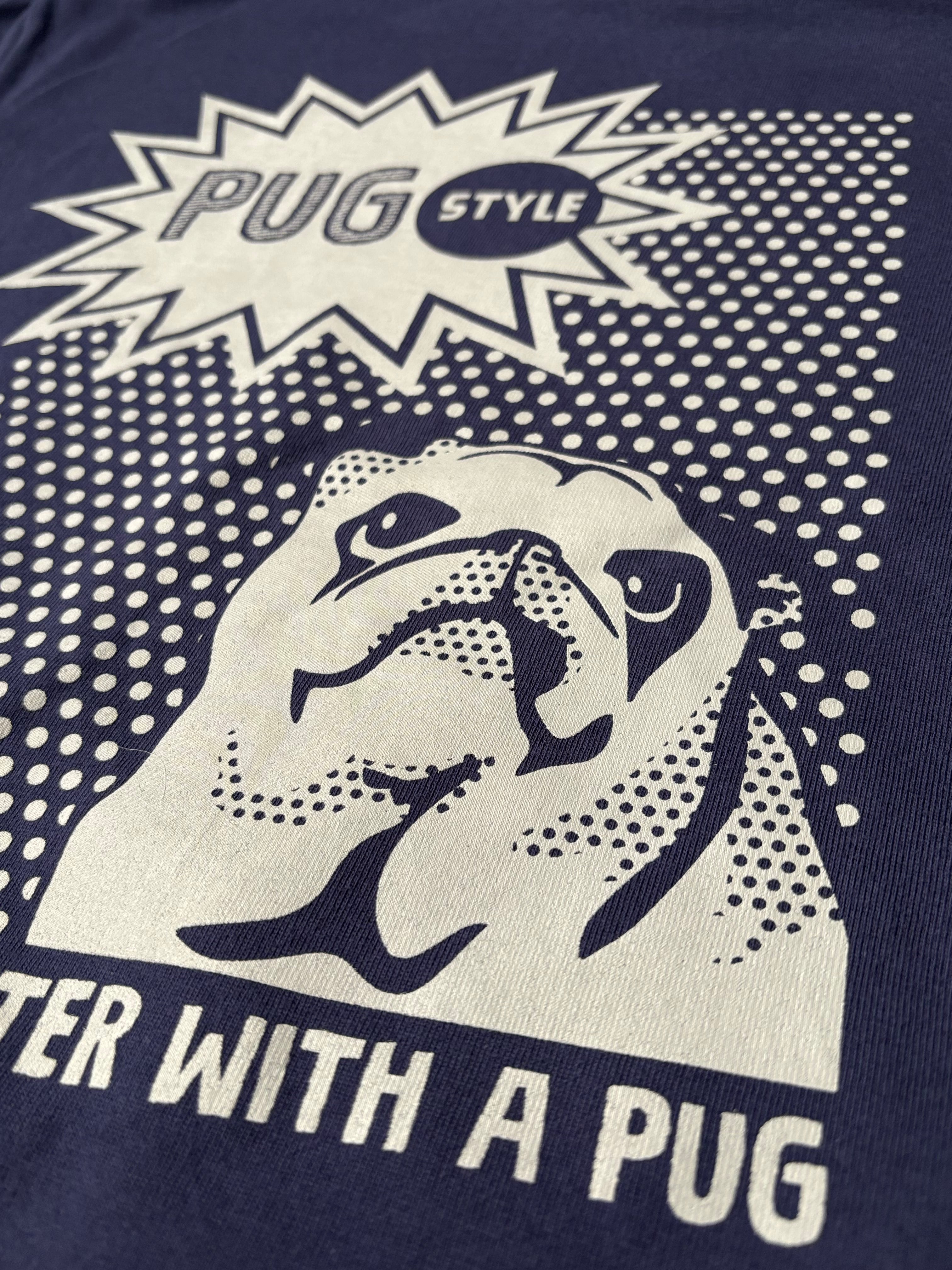アメコミ風パグTシャツ【インディゴ】