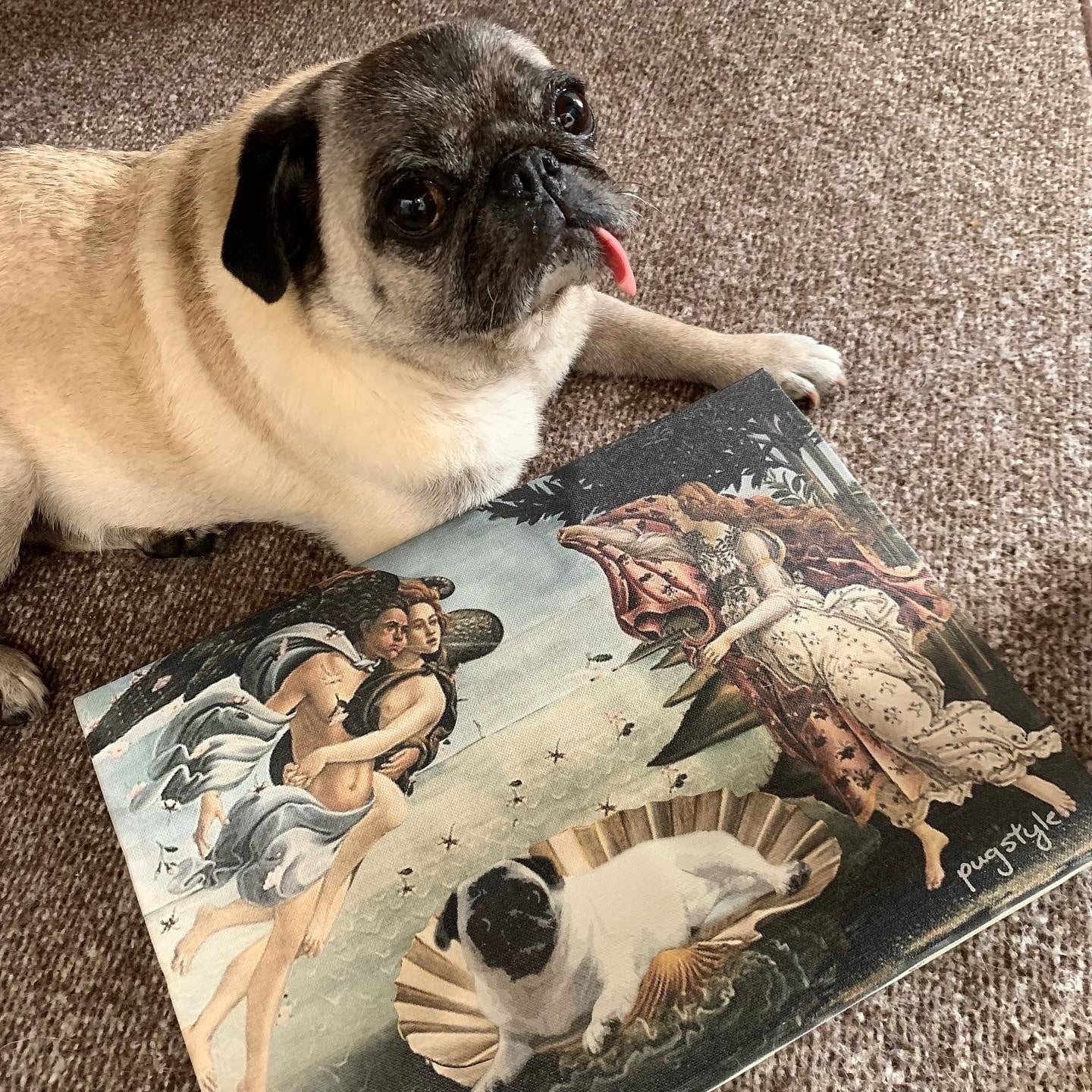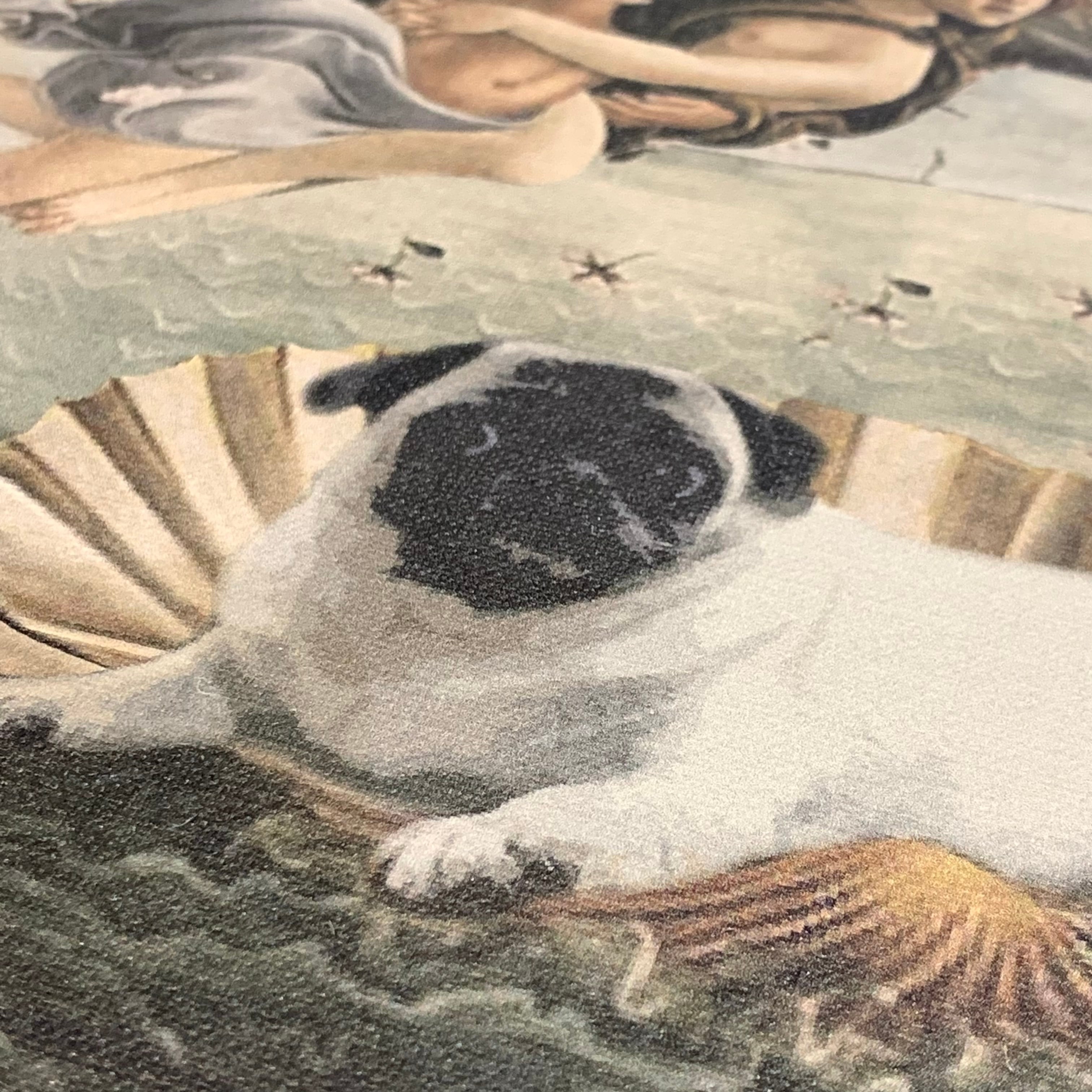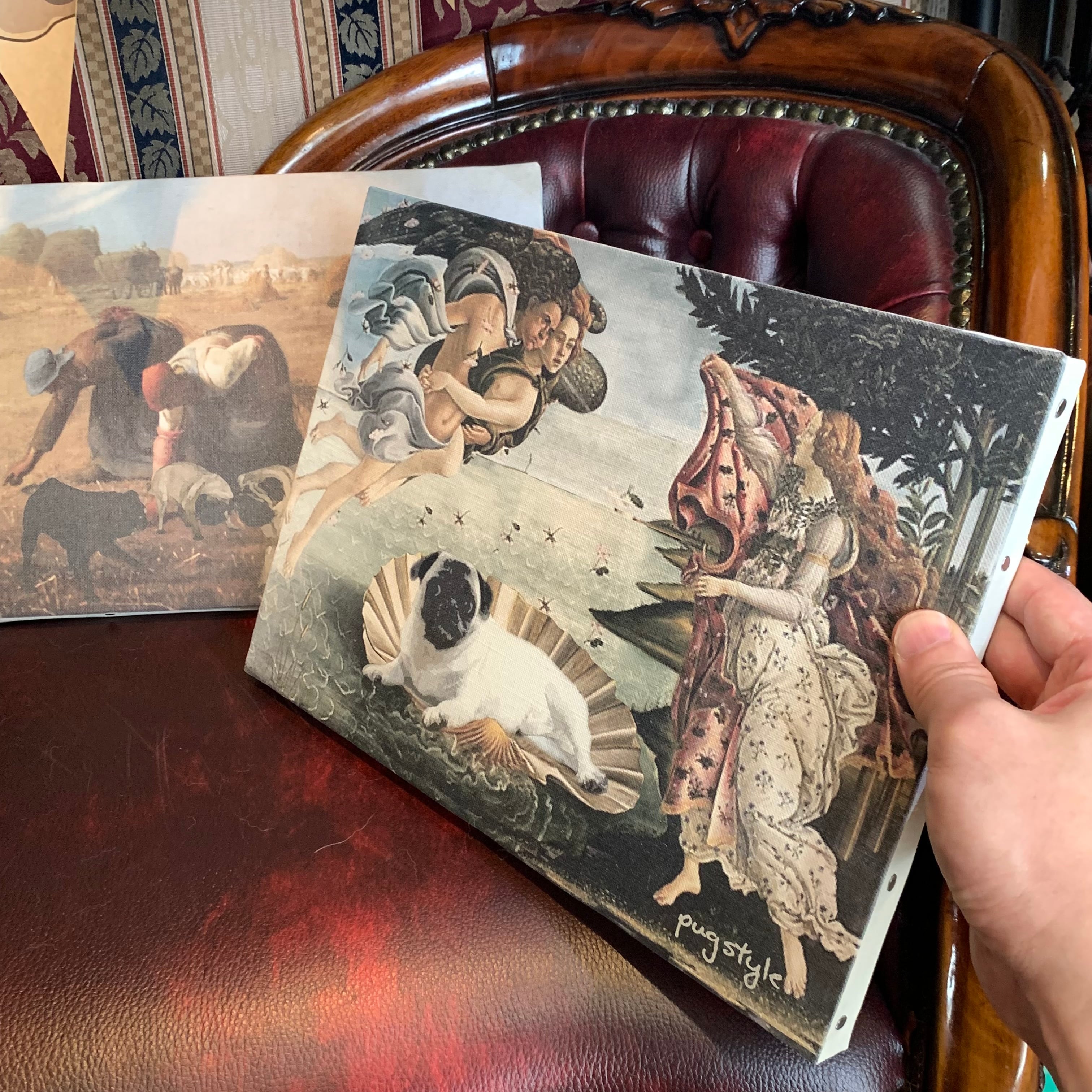 絵画に使うキャンバスに世界の名画にパグを落とし込んだデザインをプリントしました。