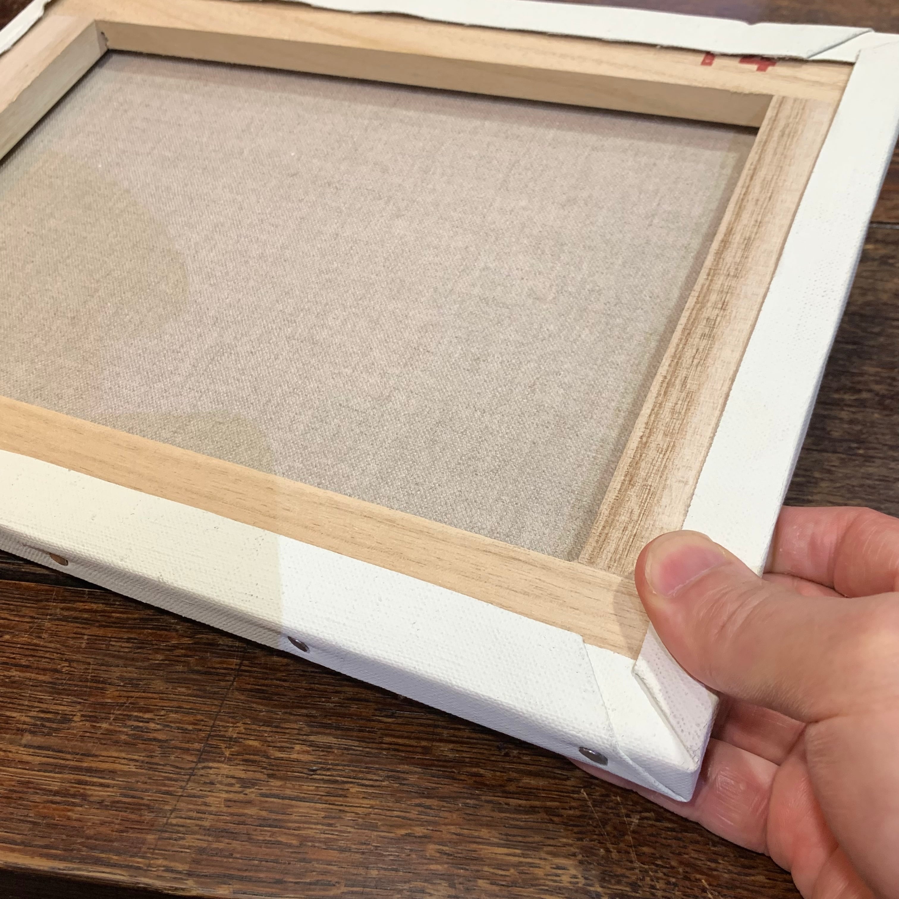 額装と違いガラスなどを使っていなく、とても軽いため(230gくらいです)立てかけるのはもちろん、壁にも画鋲一つで簡単に掛けられます。